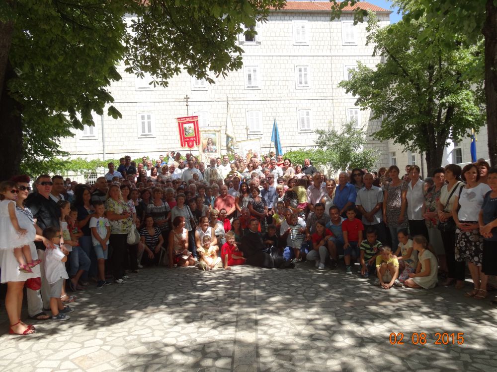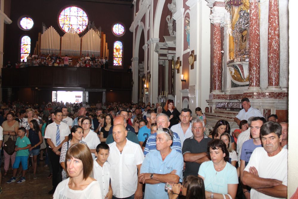 Današnje hodočašće imalo je različit tijek događanja od dosadašnjih. Nakon što su vjernici pristigli u Svetište (jedan broj i pješke) pristupili su sakramentu svete ispovijedi a zatim su u crkvi u moljenju krunice, koju je predmolio don Stipe, čekali povratak Gospine slike s Grada. Naime, jučer je Gospina Slika, nakon vojnog hodočašća u procesiji odnesena u crkvu na Gradu, gdje je bilo cijelo-noćno bdijenje. Danas, 2. kolovoza, na Gradu je sv. misu slavio naš nadbiskup mons. Marin Barišić, a poslije mise, u svečanoj procesiji Gospina slika je vraćena u crkvu.