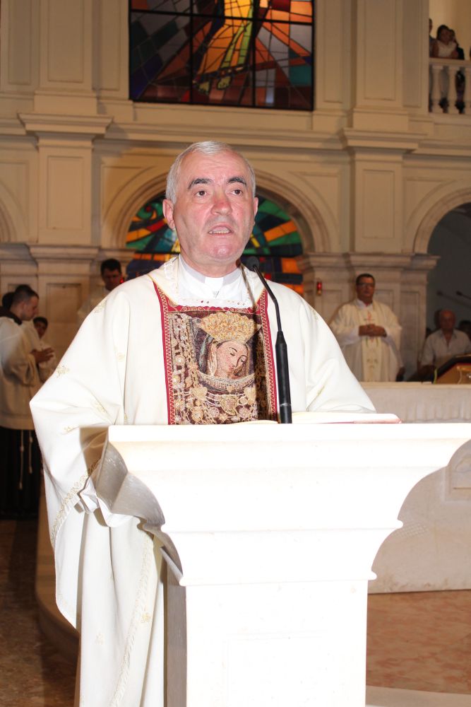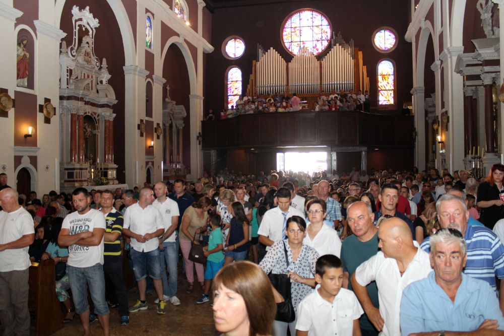 Zatim slavljena Sveta misa za hodočasnike, radi spomenutih slavlja - bez uobičajene procesije. Svetu misu predvodio je i propovijedao don Stipe. Nadahnut današnjim evanđeljem u svojoj propovijedi je istakao dvije ideje vodilje: kruh i slobodu. Isus govori o kruhu. Kruh je važan, ali nije najvažniji. Radi kruha netko prodaje svoj obraz… Sloboda ne može biti na lancu. Narod kaže, tko te kruhom hrani ćaćom ga zovi… Zato su neki prodali svoj obraz i vjeru za ideologiju koja ih je hranila…
