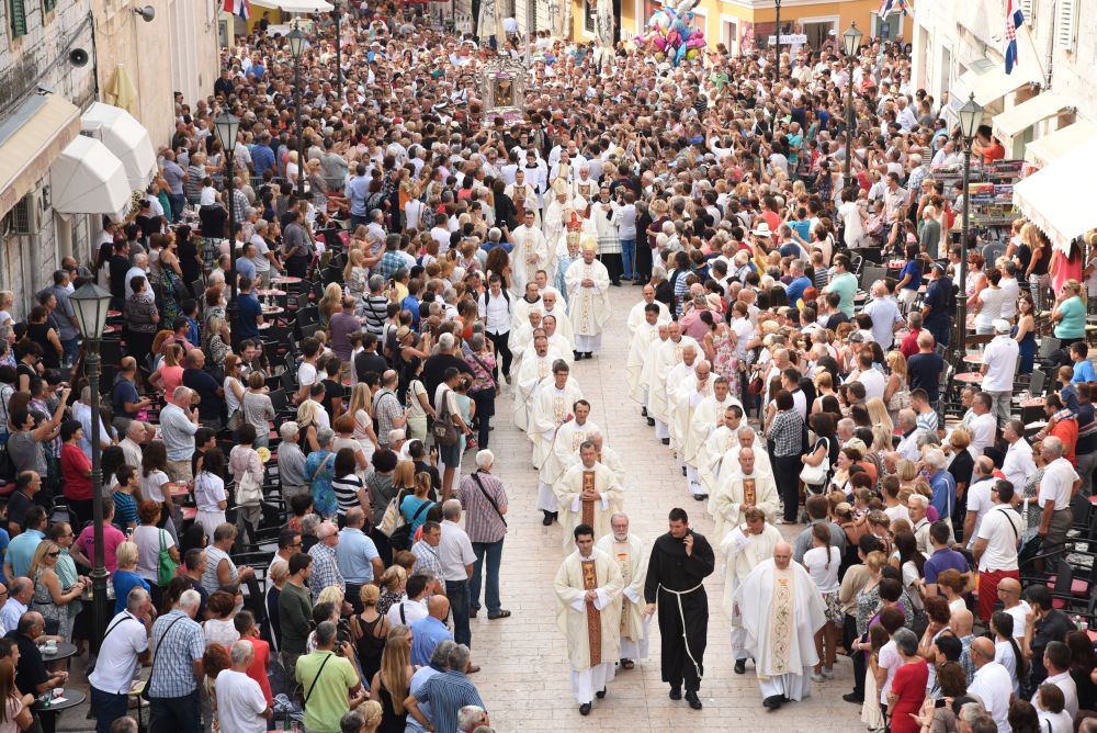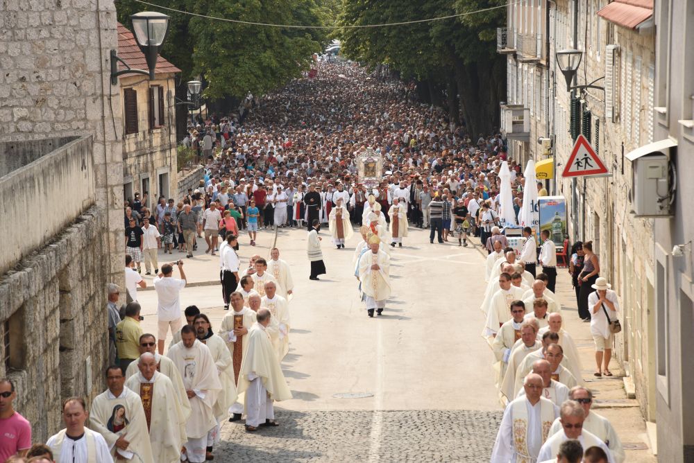 Središnje Slavlje svetkovine Uznesenja Blažene Djevice Marije ili Velike Gospe, te proslave 300. godišnjice čudesne obrane Sinja pred najezdom Turaka, započelo je procesijom iz crkve Gospe Sinjske ulicama grada Sinja. Procesija se počela formirati na Trgu kralja Tomislava u 9:00 sati. U 9:30 slavljenjem crkvenih zvona i sviranjem fanfara označeno je skidanje Gospine slike s oltara i početak procesije.
