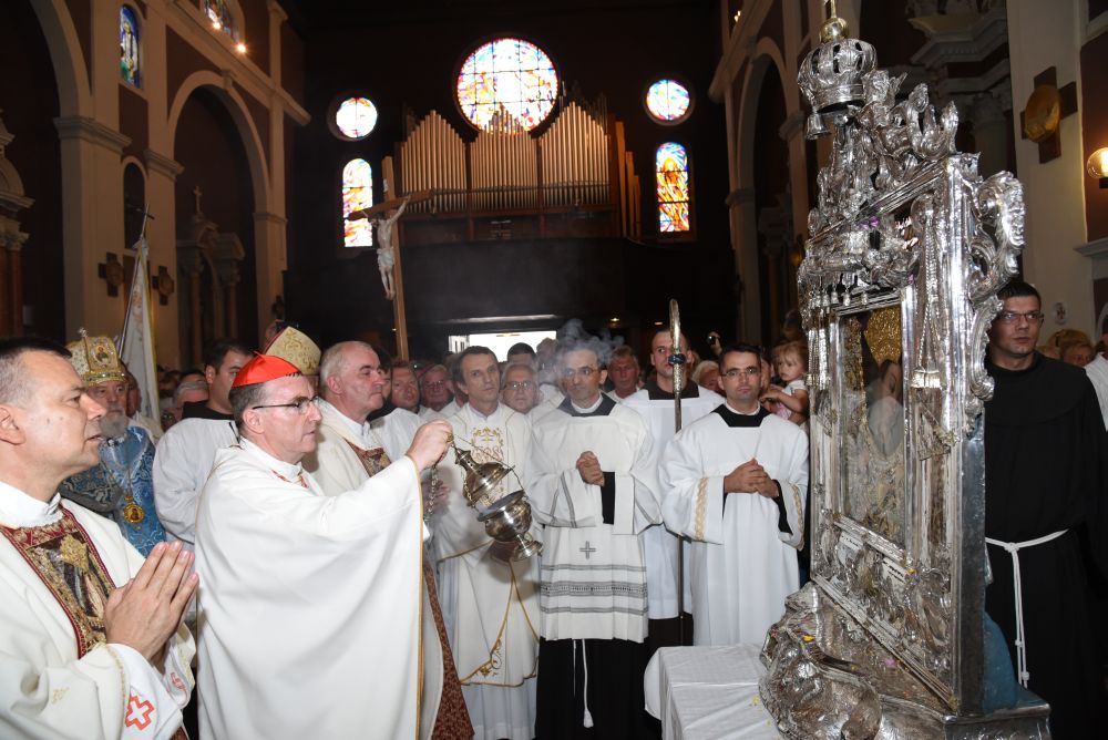 Slavlje je završilo blagoslovom o. Kardinala i blagoslovom Gospinom slikom. Nakon blagoslova bila je himna Republike Hrvatske, a zatim se Gospina slika u procesiji vratila u crkvu i postavila na njezino trajno prebivalište, na oltar.