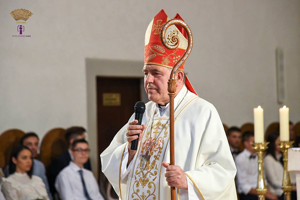 U ime krizmanika, njihovih kumova i roditelja, te u ime svih župljana zahvaljujemo Vam na dolasku u našu župu Gospe Sinjske. Zahvaljujemo što ste danas svojim dolaskom i dijeljenjem sakramenta potvrde opečatili i utvrdili u vjeri, nadi i ljubavi ove mladiće i djevojke, ove drage mlade kršćane. Od danas su oni, i službeno, sposobni pokazati i braniti svoja vjerska uvjerenja. Oni su zreli kršćani. Naša župna zajednica i mjesna Crkva osnažene su njihovom mladošću i darom Duha Svetoga, kojega su po Vama primili.