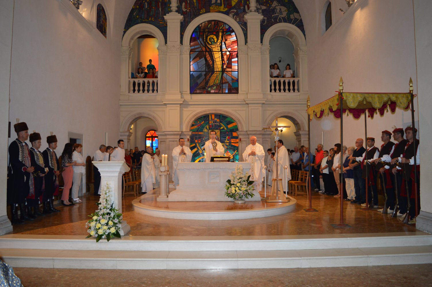 Vjernički puk Sinja i okolnih mjesta u četvrtak, 31. svibnja 2018., proslavio je svetkovinu Tijelova, koja je u Republici Hrvatskoj i državni blagdan. Središnjim euharistijskim slavljem u 9 sati predsjedao je fra Perica Maslać, sinjski župnik. Koncelebrirala su šestorica svećenika: gvardijan fra Petar Klapež, fra Gabrijel H. Jurišić, fra Bože Norac-Kljajo, fra Nediljko Jukić, fra Frano Delić i fra Josip Repeša. Misno slavlje okupilo je mnoštvo vjernika, koji su ispunili crkvu Gospe Sinjske, kao i ozvučene prostore u samostanu. Liturgijsko pjevanje animirao je mješoviti pjevački zbor, koji redovito sudjeluje u župnim odnosno samostanskim slavljima. Tradicionalno u proslavi svetkovine Tijela i Krvi Isusove sudjeluju i prvopričesnici, koji su nedavno prvi put primili posvećeni euharistijski kruh te postali dionici stola Gospodnjega. Odjeveni u bijele haljine i smješteni u prve klupe, pobožno su sudjelovali u slavlju.