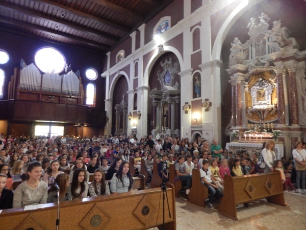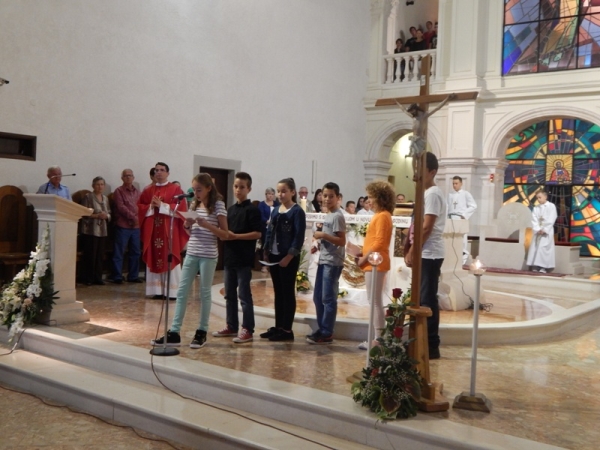 Župa Gospe Sinjske na blagdan Uzvišenja Svetoga Križa u nedjelju, 14. rujna, na dječjoj Svetoj Misi koju je predvodio fra Antonio Mravak, obilježila je početak nove školske godine. Svećenik i ministranti na oltar su došli u procesiji noseći Križ. Zborašice koje su nosile svijeće, pročitale su Molitvu za početak školske godine. Oltar je, ukrašen posebno za ovaj dan, nosio višestruku simboliku. Stranice velike otvorene knjige otkrile su Gospinu zlatnu krunu koja je natkrilila Sinjsku Alku stapajući se s njome u jedinstven krug. U sridi je ispisana brojka velikoga, tristotog jubileja, a u prazninama Alke školska godina 2014./2015.