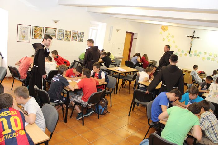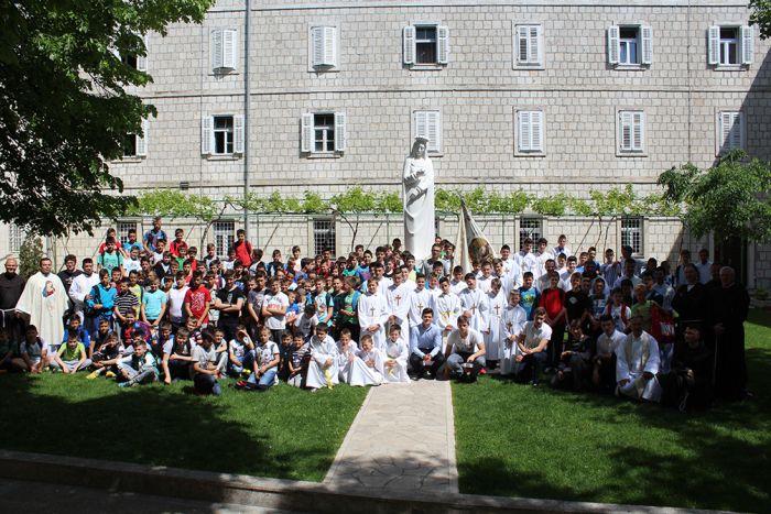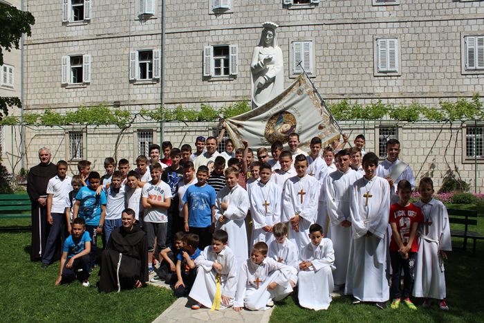 Prvi dio susreta započeo je procesijom kroz samostansko dvorište, azatim euharistijskim slavljem u 10 sati u crkvi Gospe Sinjske koje je predvodio gvardijan fra Petar Klapež. Litugijsko pjevanje predvodili su sjemeništarci. Započinjući misno slavlje o. Gvardijan je istakao kako su ministranti „cvijeće oko oltara“ jer služe Isusu, a zatim je rekao kako će moliti Isusovu majku, Čudotvornu Gospu Sinjsku, da ministrante prati u njihovu životu kako bi ustrajali u služenju Isusu i, ako ih pozove, da imaju hrabrosti odazvati se pozivu na franjevački ili svećenički život. Drugi dio susreta nastavljen je natjecanjem u kvizu. Nakon prvog kruga, koji je bio u pisanom obliku, u drugi krug su ušle ekipe s maksimalnim brojem bodova, a pobjednici kviza su ministranti iz župe Sinj,drugo mjesto su osvojili ministranti iz Omiša, a treće iz Prgometa. Sportsko natjecanje u nogometu, košarci i drugim igrama održan je na igralištu kod Franjevačke klasične gimnazije. U nogometnom natjecanju prvo mjesto osvojila je ekipa Otok, drugo Imotski i treće Zmijavci. U košarci su najbolji biliiz župe Sinj, drugo mjesto je pripao ministrantima iz Zmijavaca, a treće Omišanima. Osim navedenihsportskih natjecanja ministranti su također potezali konop, trčali u vrećama. Organizator susreta ihodočašća ministranata je Vijeće za duhovna zvanja Franjevačke provincije Presvetog Otkupitelja.