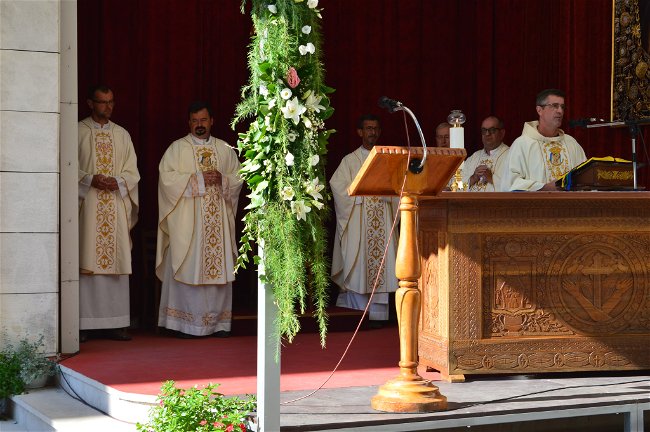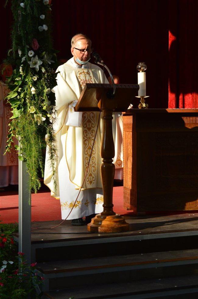 Na kraju se hodočasnicima obratio fra Ante Čovo, gvardijan i upravitelj Svetišta. Svima izrazivši iskrenu dobrodošlicu, posebno je pozdravio svećenike i mjesni zbor. "Posvetnu molitvu" predvodio je fra Mladen.