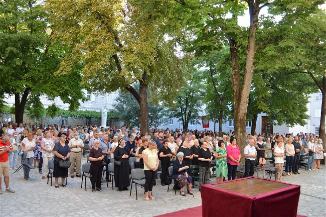 Liturgijsko pjevanje animirao je župni zbor iz Hrvaca. Na kraju euharistijskog slavlja hodočasnicima se obratio fra Ante Čovo, gvardijan i upravitelj Svetišta. Srdačno je pozdravio svećenike i mnogobrojne župljane koji su stigli na zavjet nebeskoj Majci. "Posvetnu molitvu" predvodio je župnik Hrvaca.