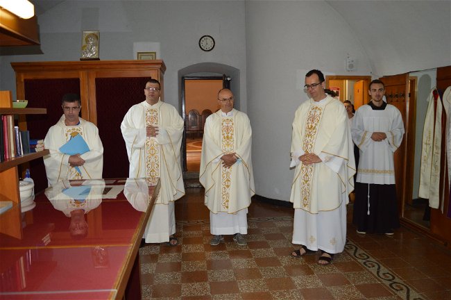 Fra Siniša je propovijedao o istinskom smislu zahvaljivanja u primjeru Blažene Djevice Marije kroz molitvu. Na kraju euharistijskoga slavlja hodočasnike je pozdravio fra Ante Čovo, gvardijan i upravitelj Svetišta. "Posvetnu molitvu" župe predvodio je Župnik.