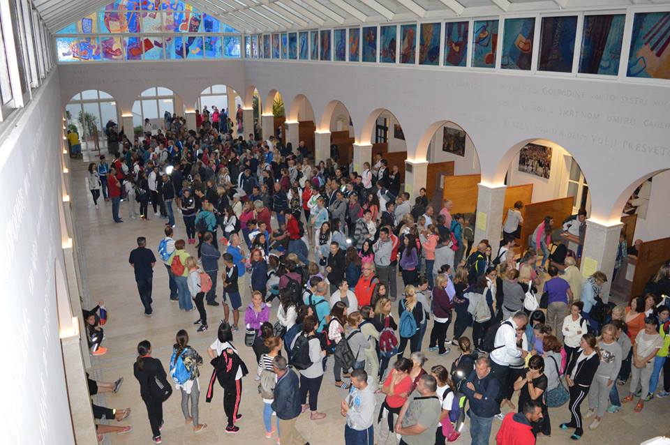 hodocasce mladih 2016Dan uoči svetkovine Velike Gospe, od ranih jutarnjih sati u alkarski grad počele su pristizati grupe hodočasnika, pomalo i umornih, ali vedrog duha i srca. Put ih je vodio prema crkvi Gospe Sinjske i "Vratima milosrđa". Oci franjevci su ispovijedali u samostanskom klaustru od 3.00 sata, a kako je vrijeme teklo, tako je bilo sve više skrušenih duša koje su se izmirile s Bogom i ljudima u slavlju sakramenta ispovijedi. Mnogi od njih našli su mjesto kratkog odmora po samostanskim hodnicima, stepenicama, kapelicama, pa i u samoj crkvi. Svaka klupa, stepenica ili sjedalica postadoše i više nego udobni za odmoriti tijelo nakon 6-tnog putovanja. A drugi su pred milosnim likom Čudotvorne Gospe Sinjske sklapali ruke na molitvu, mnogi od kojih svojim golim koljenima dodirivaše hladni mramor, koji čuva stoljetnu priču naših djedova i baka, kao i njihovih baka i djedova.