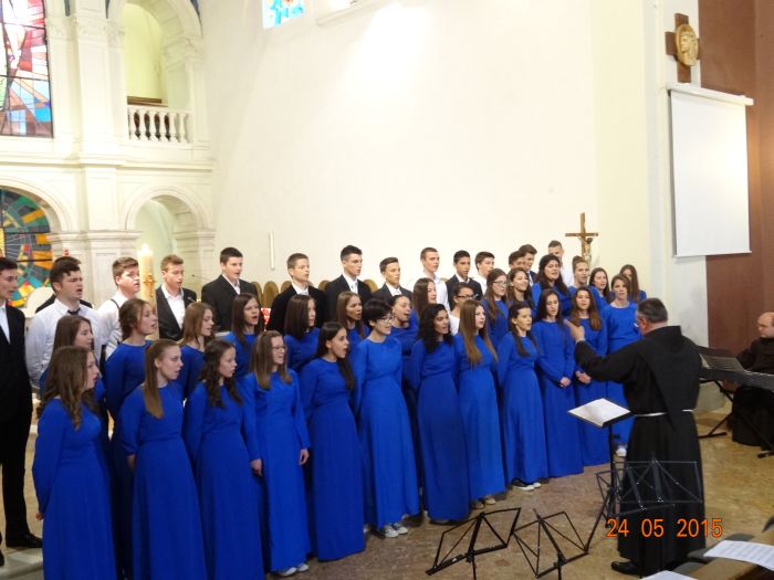 U nedjelju 24. svibnja u crkvi Čudotvorne Gospe Sinjske nastupili su pjevački zborovi Franjevačke klasične gimnazije iz Sinja i Nadbiskupijske klasične gimnazije „Don Frane Bulić“ iz Splita. Preko svete mise u 11,30 pjevao je zbor i svirao orkestar Franjevačke klasične gimnazije, pod ravnanjem mo. fra Stipice Grgata. Za orguljama pjevanje je pratio fra Frano Bosnić. Svetu Misu je predvodio don Josip Dukić, ravnatelj Nadbiskupijske klasične gimnazije.