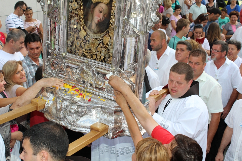 U predvečerje svetkovine Velike Gospe, 14. kolovoza 2014. u 18.00 sati, slavlje Uznesenja blažene Djevice Marije započelo je u 18.00 sati skidanjem Gospine slike i procesijom preko samostanskog dvorišta do Trga dr. Franje Tuđmana. Za vrijeme skidanja slike i procesije slavila su zvona Gospe Sinjske i svirale fanfare. Sliku Gospe Sinjske nosili su franjevački bogoslovi.