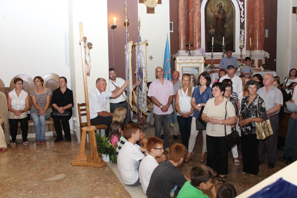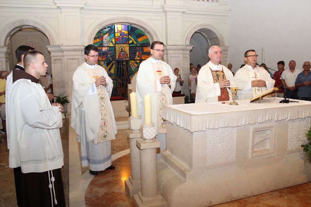 Zatim slavljena Sveta misa za hodočasnike, radi spomenutih slavlja - bez uobičajene procesije. Svetu misu predvodio je i propovijedao don Stipe. Nadahnut današnjim evanđeljem u svojoj propovijedi je istakao dvije ideje vodilje: kruh i slobodu. Isus govori o kruhu. Kruh je važan, ali nije najvažniji. Radi kruha netko prodaje svoj obraz… Sloboda ne može biti na lancu. Narod kaže, tko te kruhom hrani ćaćom ga zovi… Zato su neki prodali svoj obraz i vjeru za ideologiju koja ih je hranila…