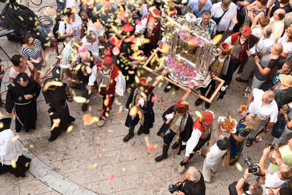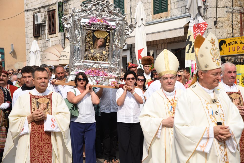 Središnje Slavlje svetkovine Uznesenja Blažene Djevice Marije ili Velike Gospe, te proslave 300. godišnjice čudesne obrane Sinja pred najezdom Turaka, započelo je procesijom iz crkve Gospe Sinjske ulicama grada Sinja. Procesija se počela formirati na Trgu kralja Tomislava u 9:00 sati. U 9:30 slavljenjem crkvenih zvona i sviranjem fanfara označeno je skidanje Gospine slike s oltara i početak procesije.