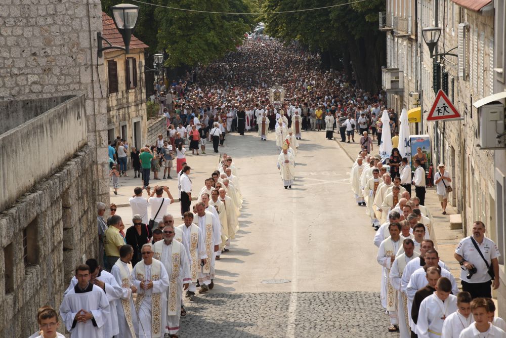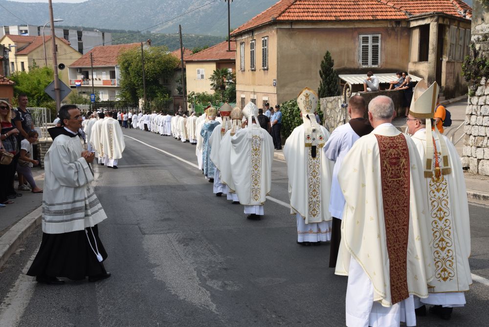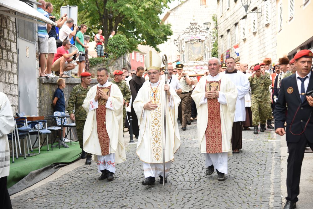 Nakon procesije, koja je trajala sat i trideset minuta uslijedilo je euharistijsko slavlje. Euharistijsko slavlje, kao posebni Papin izaslanik predvodio je zagrebački nadbiskup kardinal Josip Bozanić, u zajedništvu s mons. Marinom Barišićem, nadbiskupom metropolitom splitsko-makarskim, mons. Želimirom Puljićem, nadbiskupom zadarskim i predsjednikom Hrvatske biskupske konferencije, mons. Franjom Komaricom, biskupom banjalučkim, mons. Ilijom Janjićem, biskupom kotorskim, vladikom Nikolom Kekićem, biskupom Križevačke eparhije, mons. Markom Semrenom, pomoćnim biskupom banjalučkim, provincijalom Provincije Presvetoga Otkupitelja, fra Joškom Kodžomanom, čuvarom Sinjskog svetišta, fra Petrom Klapežom, cetinskim dekanom don Stipom Ljubasom, sinjskim župnikom fra Antom Bilokapićem te s ostalim provincijalima, svećenicima i redovnicima.