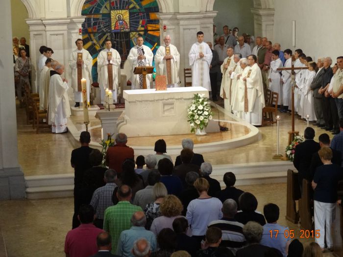 Na početku mise pozdravnu riječ uputio je gvardijan i upravitelj Svetišta fra Petar Klapež, a na kraju misnog slavlja riječ zahvale svim sudionicima znanstvenog skupa izrekao je organizator skupa fra Josip Grbavac. Preko sv. mise pjevao je Župni mješoviti zbor pod ravnanjem maestra fra Jure Župića i s. Jelene Mijić.