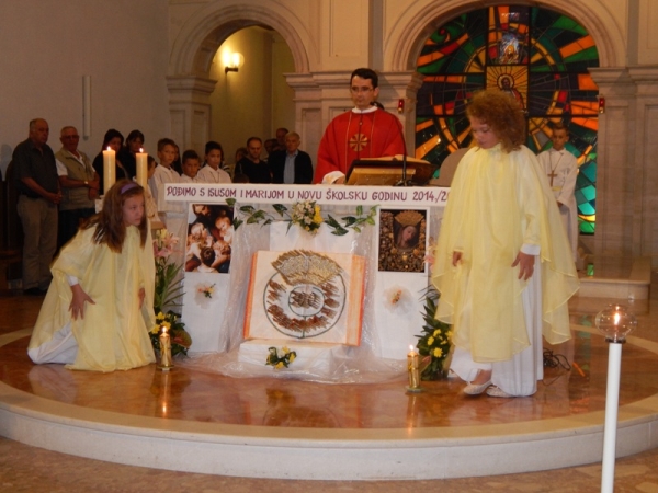 Župa Gospe Sinjske na blagdan Uzvišenja Svetoga Križa u nedjelju, 14. rujna, na dječjoj Svetoj Misi koju je predvodio fra Antonio Mravak, obilježila je početak nove školske godine. Svećenik i ministranti na oltar su došli u procesiji noseći Križ. Zborašice koje su nosile svijeće, pročitale su Molitvu za početak školske godine. Oltar je, ukrašen posebno za ovaj dan, nosio višestruku simboliku. Stranice velike otvorene knjige otkrile su Gospinu zlatnu krunu koja je natkrilila Sinjsku Alku stapajući se s njome u jedinstven krug. U sridi je ispisana brojka velikoga, tristotog jubileja, a u prazninama Alke školska godina 2014./2015.