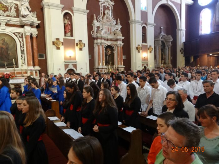 U nedjelju 24. svibnja u crkvi Čudotvorne Gospe Sinjske nastupili su pjevački zborovi Franjevačke klasične gimnazije iz Sinja i Nadbiskupijske klasične gimnazije „Don Frane Bulić“ iz Splita. Preko svete mise u 11,30 pjevao je zbor i svirao orkestar Franjevačke klasične gimnazije, pod ravnanjem mo. fra Stipice Grgata. Za orguljama pjevanje je pratio fra Frano Bosnić. Svetu Misu je predvodio don Josip Dukić, ravnatelj Nadbiskupijske klasične gimnazije.