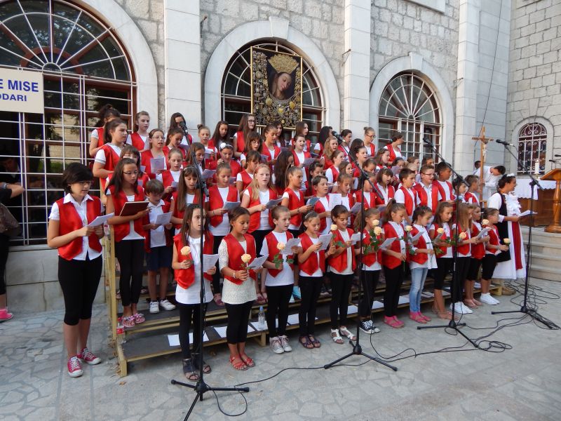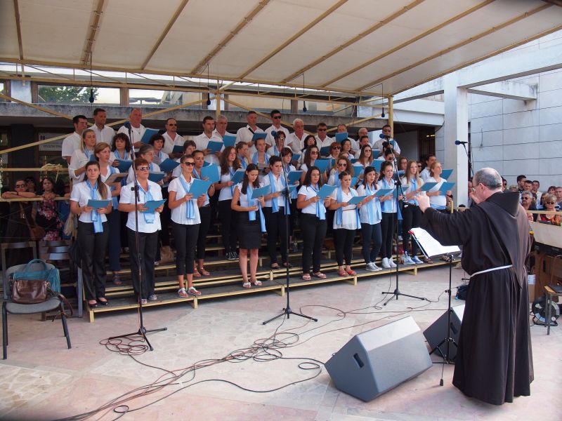 1. Mješoviti pjevački zbor broji 45 redovitih članova, a za svetkovinu Velike Gospe uključe se i bivši članovi koji su na studiju u drugim gradovima kao što su Zagreb, Zadar, Split, Mostar, Rijeke. Probe pjevanja održavaju se svakog tjedna - utorkom muški dio zbora u 19 sati (u 2017. godini probe su održane 41 put), a srijedom ženski dio zbora u 19 sati (u 2017. godini probe su održane 41 put). Svi zajedno imaju probe petkom u 19 sati . (U 2017. godini zajedničke probe su održane 60 puta). Mješoviti zbor nastupa svake nedjelje preko župne sv. mise u 10 sati, blagdanima i svetkovinama te u raznim prigodama tijekom liturgijske godine (u 2017. godini pjevali su ukupno 150 puta). S pjevačkim zborom mladih jednom godišnje idu na izlet, a tijekom godine samostan za njih organizira nekoliko domjenaka: nakon proslave Velike Gospe (15. kolovoza) idu na Cetinu, zajedno slave sv. Ceciliju i Krista Kralja. Na Veliki četvrtak samostan ugosti soliste koji su pjevali u Gospinom plaču, a nakon obreda Velikog petka zbor se okupi na „posnoj" večeri u samostanu.