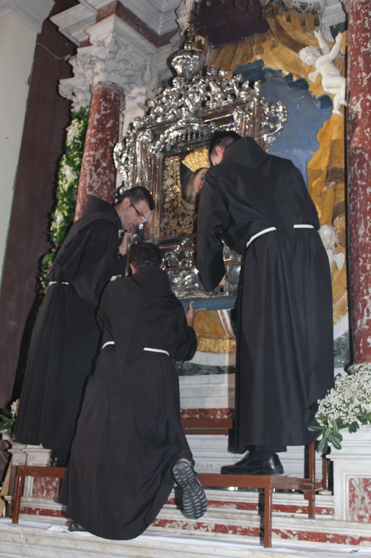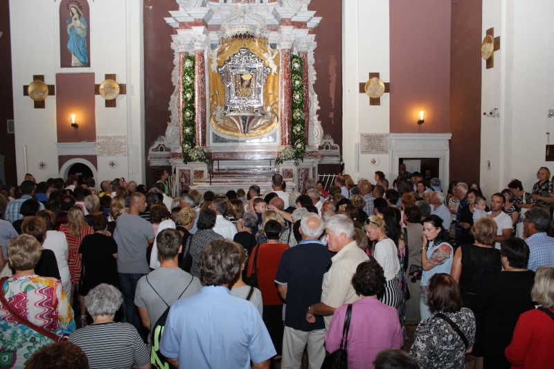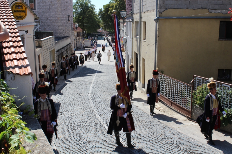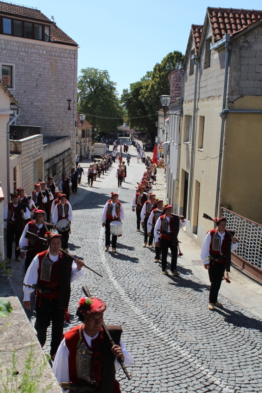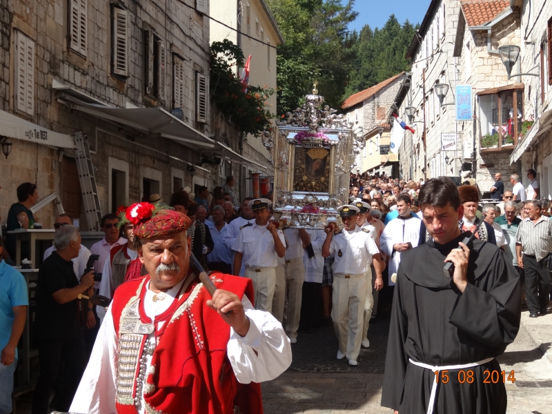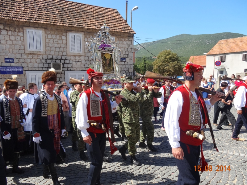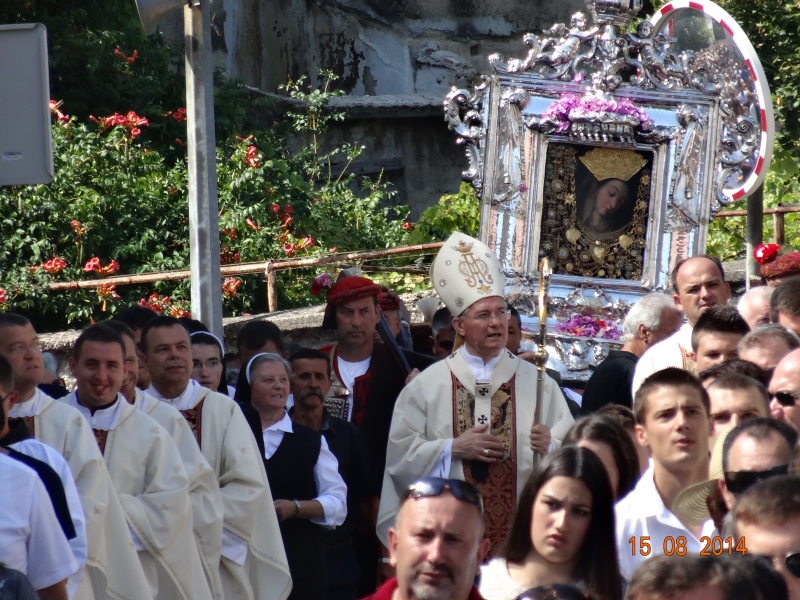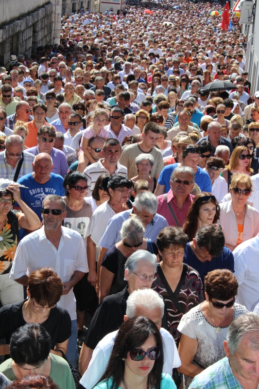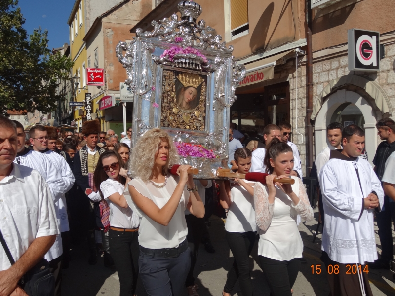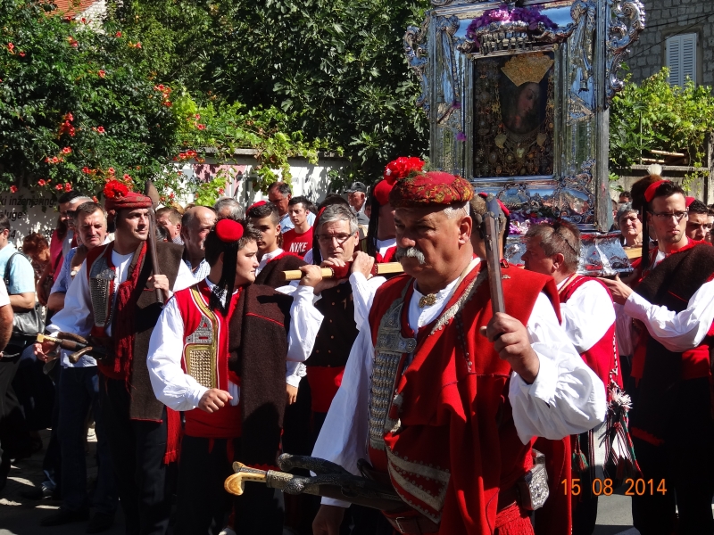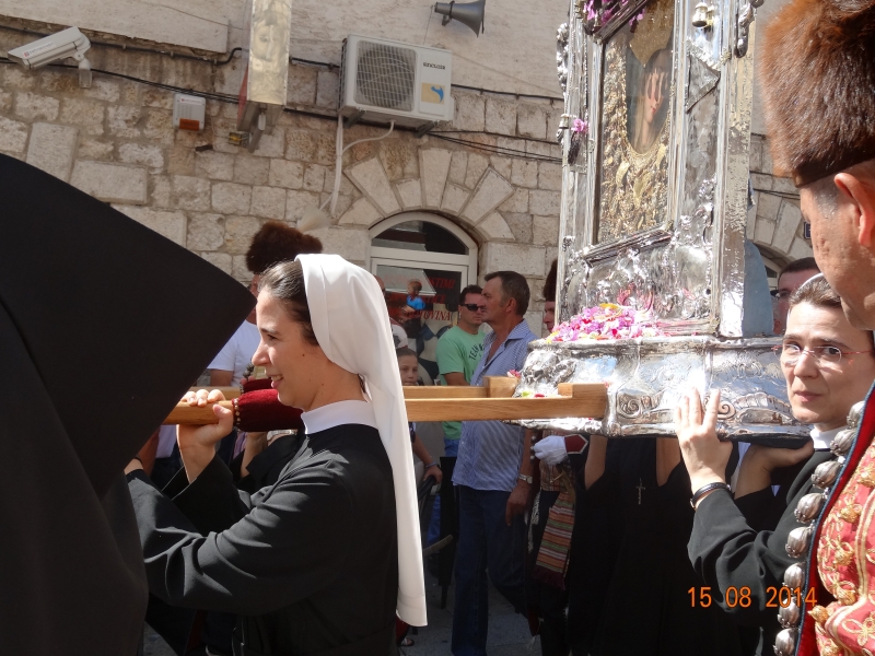 Slavljenje zvona i sviranje fanfara u 9.30 sati označilo je skidanje Slike Gospe Sinjske i slavlje svetkovine Uznesenja blažene Djevice Marije na nebo - Velike Gospe u Sinju 15. kolovoza 2014. godine pod motom "Čuvaj naše obitelji, Marijo mati, mole te tvoji vjerni Hrvati!"