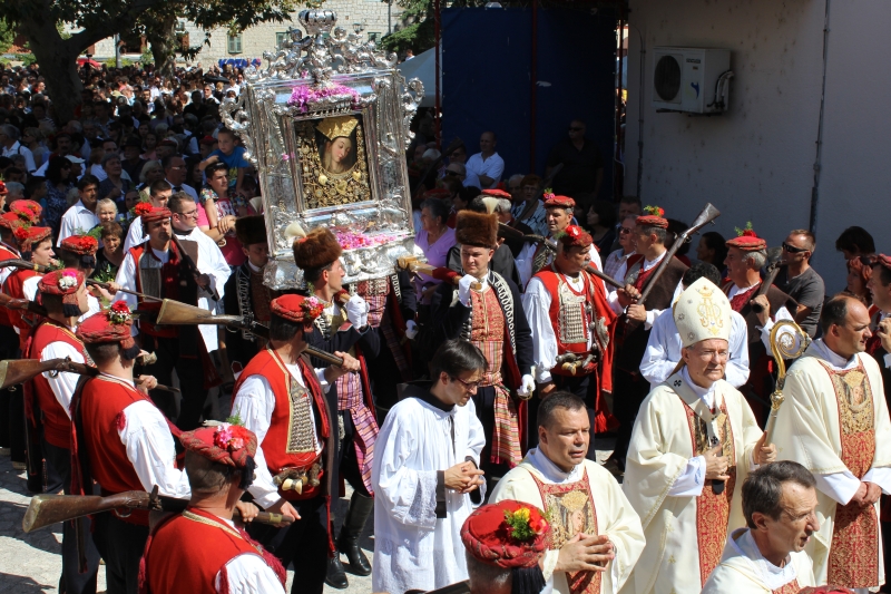 Hodočasnici iz svih krajeva Hrvatske, Bosne i Hercegovine te mnogi koji se nalaze na odmoru u Hrvatskoj došli su Sinj na proslavu Velike Gospe. Već od 3.00 sata oko 40 svećenika bilo je hodočasnicima na raspolaganju za sakrament pomirenja. Slavlje svetih misa započelo je u 4.00 sata.