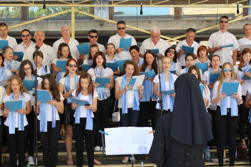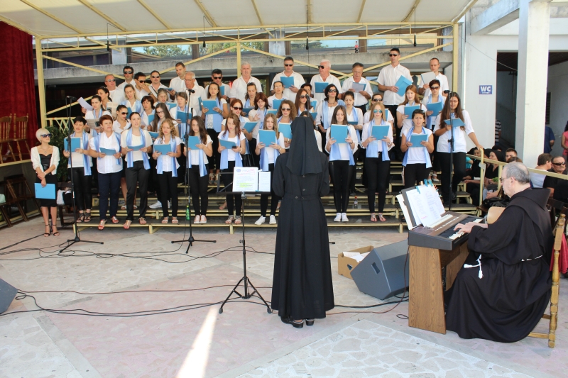 Zbor Svetišta pod ravnanjem fra Jure Župića i s. Jelene Mijić pratio je pjevanjem procesiju i euharistijsko slavlje u kojem su služili ministranti i franjevački bogoslovi.