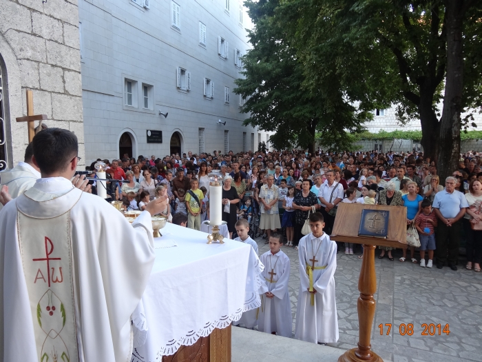 U nedjelju, 17. kolovoza misno slavlje i posvetu djece Gospi predvodio je gvardijan fra Petar Klapež, s njim su koncelebrirali župnik fra Ante i župni vikar fra Antonio.