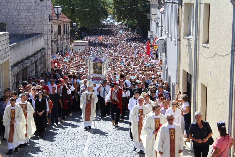 1. Sve vas danas okupljene oko Majke Marije u našem svetištu Gospe Sinjske srdačno pozdravljam, draga braćo i sestre! Pozdravljam revne čuvare Gospina svetišta, braću franjevce, oca provincijala, gvardijana, župnika, ispovjednike, dekana i braću svećenike u koncelebraciji. Pozdravljam alkare i tebe, vjerni puče Božji grada Sinja, hodočasnike Cetinske krajine i sve vas sa svih strane Hrvatske i Bosne i Hercegovine i šire.